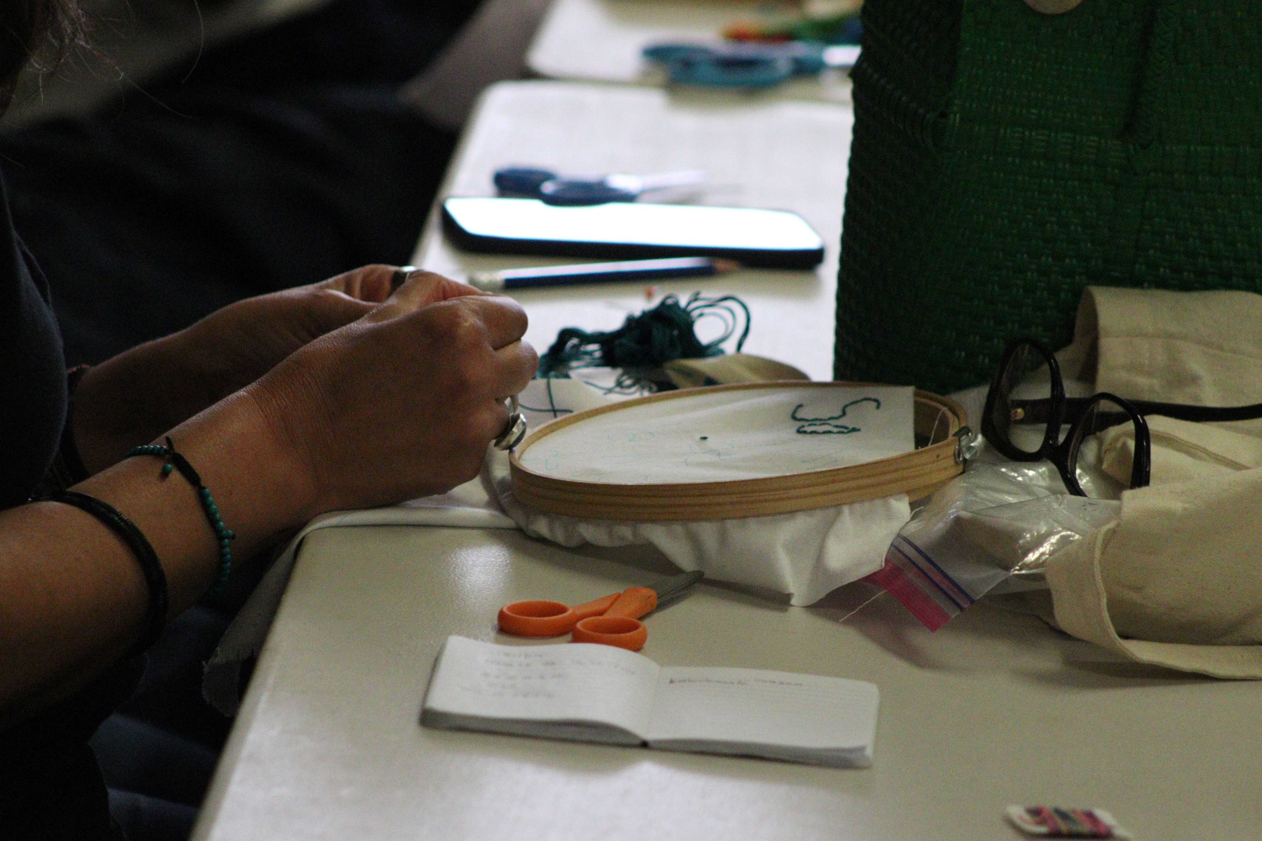 Una vez terminada la sesión, la ponente invitó a su taller Bordado Feminista: cómo construir un presente digno y alegre para todas, el cual se llevó a cabo con éxito el sábado 4 y domingo 5 de octubre, en dos sesiones en el Centro de Documentación de las Artes (Cendoart).
