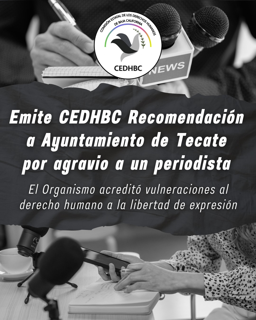 La violencia contra periodistas en México mantiene un índice de impunidad superior al 98%, un contexto que vuelve especialmente significativa la Recomendación 6/2025 emitida por la Comisión Estatal de los Derechos Humanos de Baja California (CEDHBC) contra el Ayuntamiento de Tecate por vulnerar la libertad de expresión en agravio de un comunicador local.