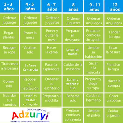 Consejos Adzuryi – Tabla de tareas que puede hacer un niño según su edad