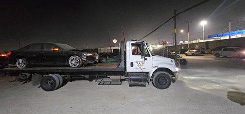 En el lugar se recuperó un vehículo sedán marca Audi A4, color gris, modelo 2017, con reporte de robo en San Diego, California. Además, se aseguraron 100 vehículos, 44 tráileres, 14 cajas secas, 6 tractocamiones y una unidad bombera.