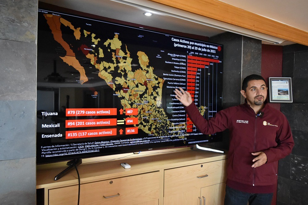 Actualmente, la ocupación hospitalaria Covid en Baja California es de 40.60%, con 197 camas disponibles, 208 ventiladores disponibles, 104 pacientes hospitalizados (confirmados por laboratorio) y la tasa de reproducción efectiva de 1.09.