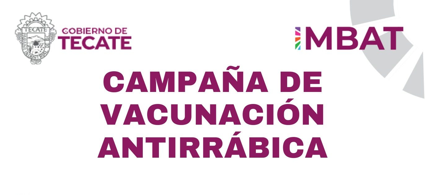 - El Gobierno de Tecate, a través del Instituto Municipal de Bienestar Animal (IMBAT), mantiene su compromiso con la salud pública y el bienestar de las mascotas mediante la Campaña de Vacunación Antirrábica Gratuita, que sigue recorriendo distintas comunidades del municipio.