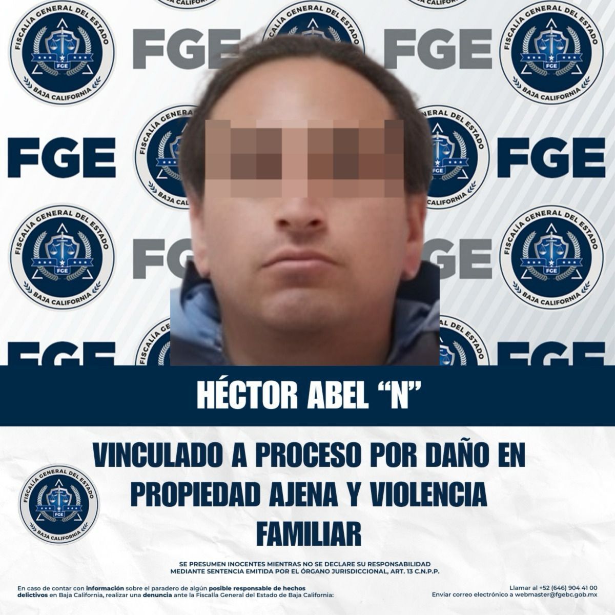 La Fiscalía Regional de Tecate, a través de la Unidad de Investigación con Detenido, obtuvo la vinculación a proceso en contra de Héctor Abel “N” por los delitos de daño en propiedad ajena y violencia familiar.