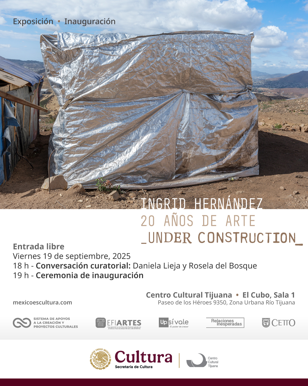 Esta exposición celebra dos décadas de la práctica artística de la artista tijuanense Ingrid Hernández, y será inaugurada el próximo 19 de septiembre en la Sala 1 de El Cubo del Centro Cultural Tijuana (Cecut), institución de la Secretaría de Cultura del Gobierno de México, a las 19:00 horas.