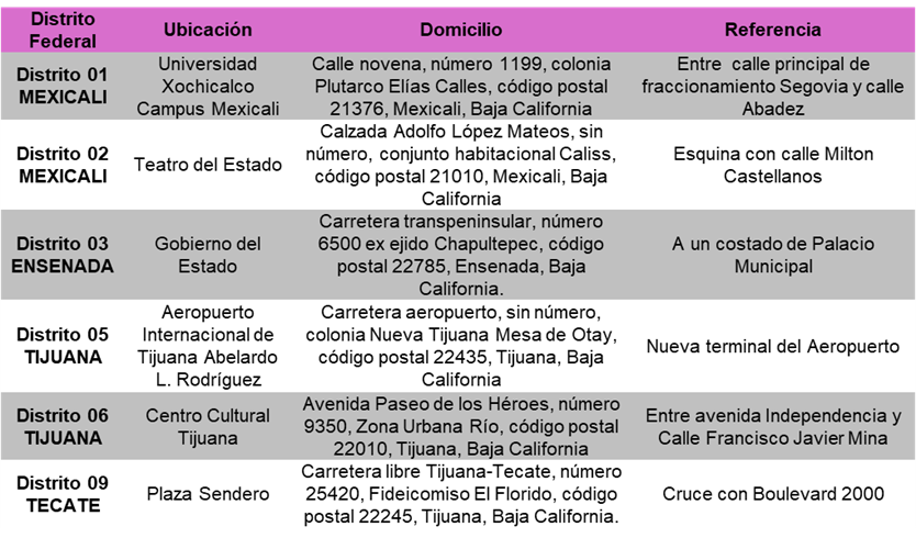 El Vocal de Organización Electoral del INE BC, Alejandro Ramírez Hernández dio a conocer que, la ubicación de las seis Casillas Especiales aprobadas será la siguiente: