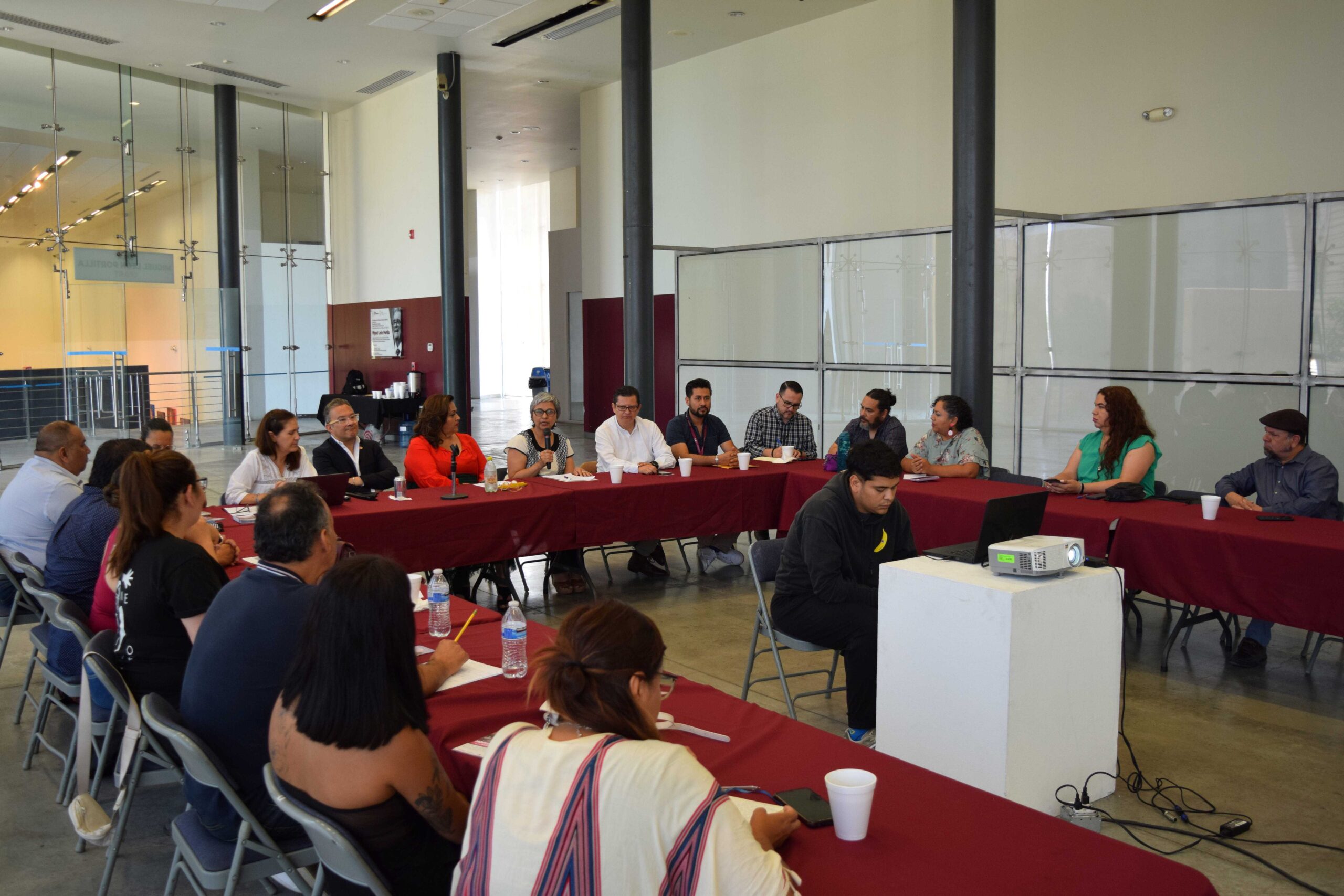 Diego Martínez García, director general de Vinculación Cultural, Ximena Monterde Corona, directora de Vinculación con Estados y Municipios, Miriam García Aguirre, directora general de Cecut, Alma Delia Ábrego Ceballos, Secretaria de Cultura de Baja California, acompañados por el equipo docente de Semilleros de forma presencial o en línea encabezaron el diálogo.