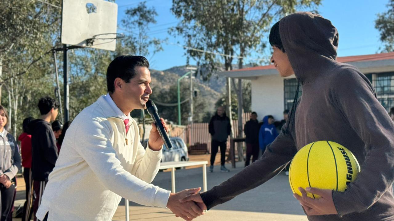 - El diputado Beto Valle inició este lunes actividades en la Telesecundaria #36 “Jaime Nuno”, en la colonia Paso del Águila, donde se reunió con estudiantes para motivarlos a continuar con sus estudios y combinar la educación con la práctica deportiva, fortaleciendo su salud mental y compromiso con la comunidad.