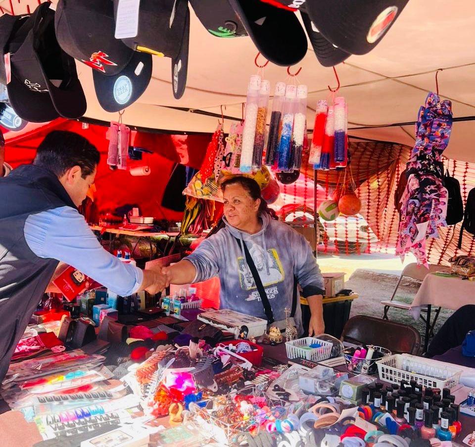 Posteriormente, el legislador realizó un recorrido por el mercado sobre ruedas de la colonia Downey, donde sostuvo diálogo con locatarios, escuchó sus planteamientos y refrendó su compromiso de mantener una atención cercana y permanente. Durante el encuentro, los invitó a acudir a su módulo de atención ciudadana ubicado en la avenida Revolución, donde se brinda asesoría y seguimiento a gestiones sociales.