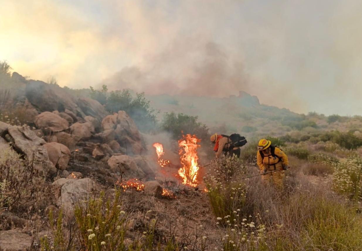 Durante la noche y las primeras horas de este día, elementos de Bomberos Tecate, en conjunto con personal de Cal Fire, realizaron operaciones de ignición controlada sobre el perímetro suroeste del Ejido Pino Suárez, con el objetivo de reforzar las líneas de control y prevenir la propagación del fuego.