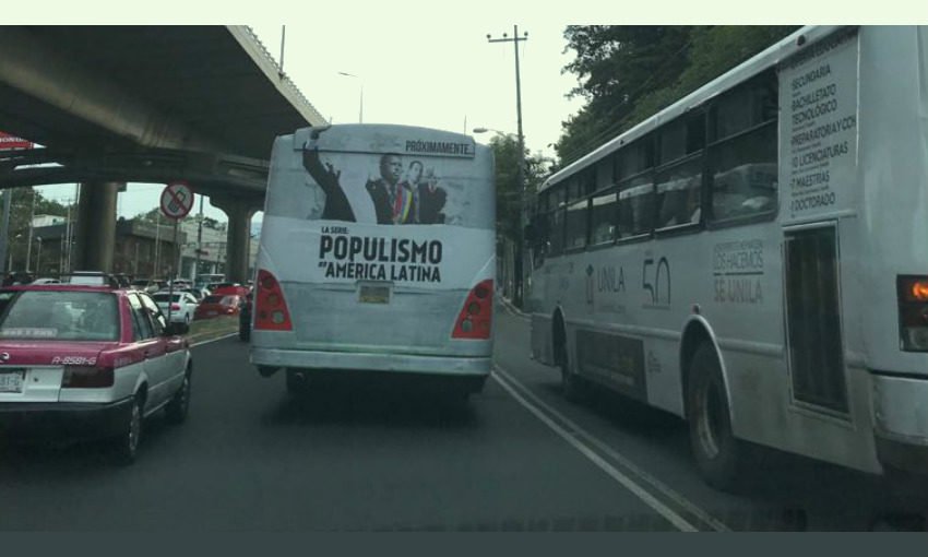 Los anuncios en los que aparecía la imagen del candidato presidencial Andrés Manuel López Obrador, portando una banda presidencial, al lado de los ex presidentes Hugo Chávez y Luiz Inácio Lula Da Silva, para promocionar la polémica serie “Populismo en América Latina”, fueron modificados y eliminaron la figura del tabasqueño, dejando un espacio en blanco en la publicidad pegada en los camiones que transitan en varias rutas de la Ciudad de México. El pasado 27 de abril Aristegui Noticias reportó que la producción no contaba con permiso de publicidad ni registro en el IMPI