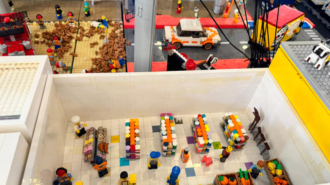 Ángel explicó que hace nueve años comenzaron construyendo una tienda de conveniencia en Lego; con el tiempo fueron agregando edificios y elementos típicos mexicanos, buscando hacer algo original.