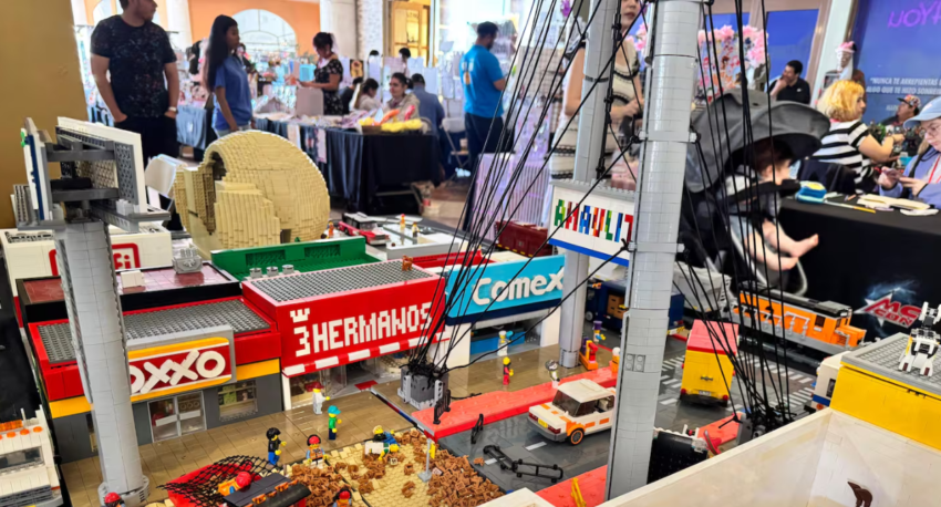 Ángel explicó que hace nueve años comenzaron construyendo una tienda de conveniencia en Lego; con el tiempo fueron agregando edificios y elementos típicos mexicanos, buscando hacer algo original.
