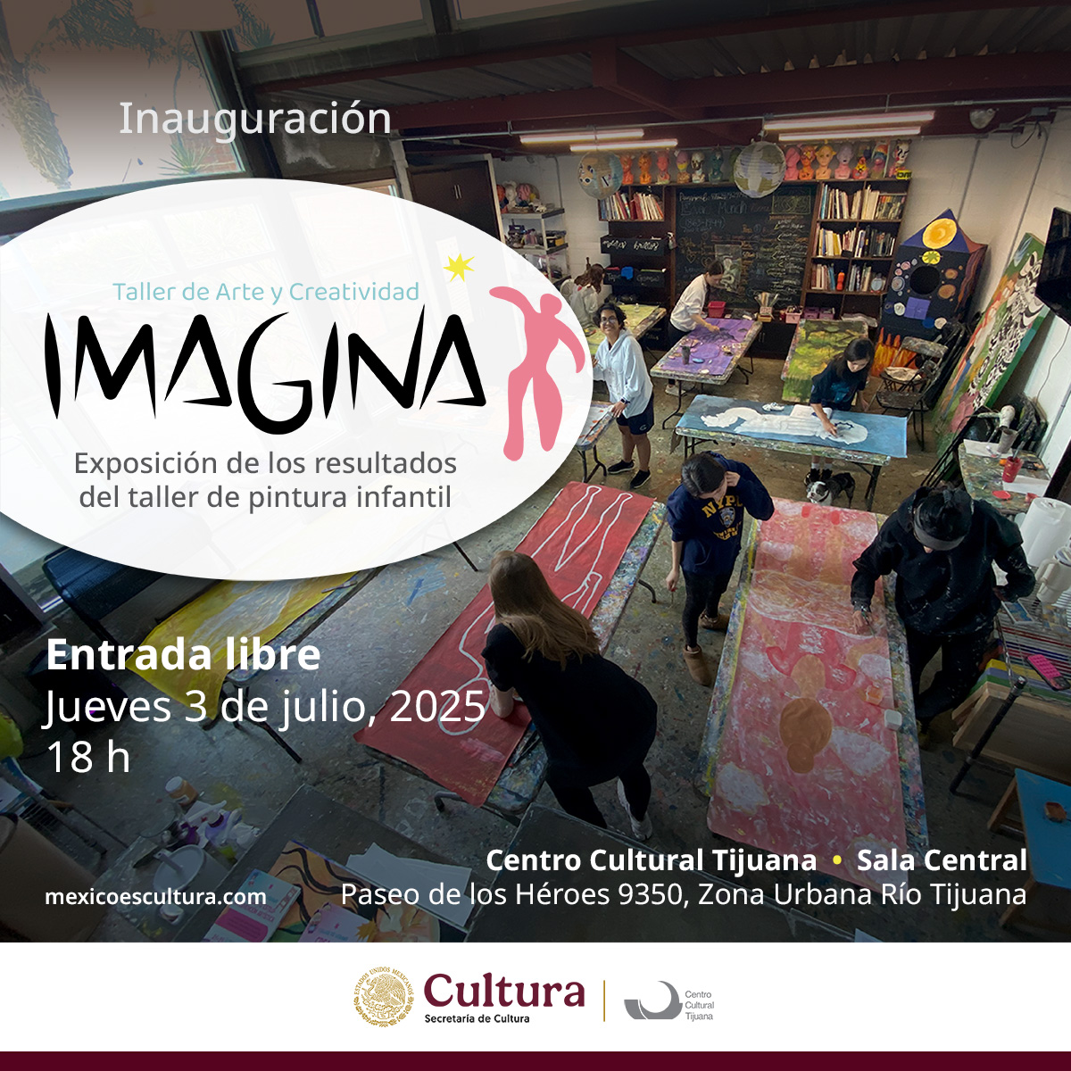 El Centro Cultural Tijuana (Cecut), institución de la Secretaría de Cultura del Gobierno de México, invita a su próxima inauguración de la exposición Taller de Arte y Creatividad Imagina en la que los artistas participantes son niñas, niños y jóvenes entre 6 y 16 años.