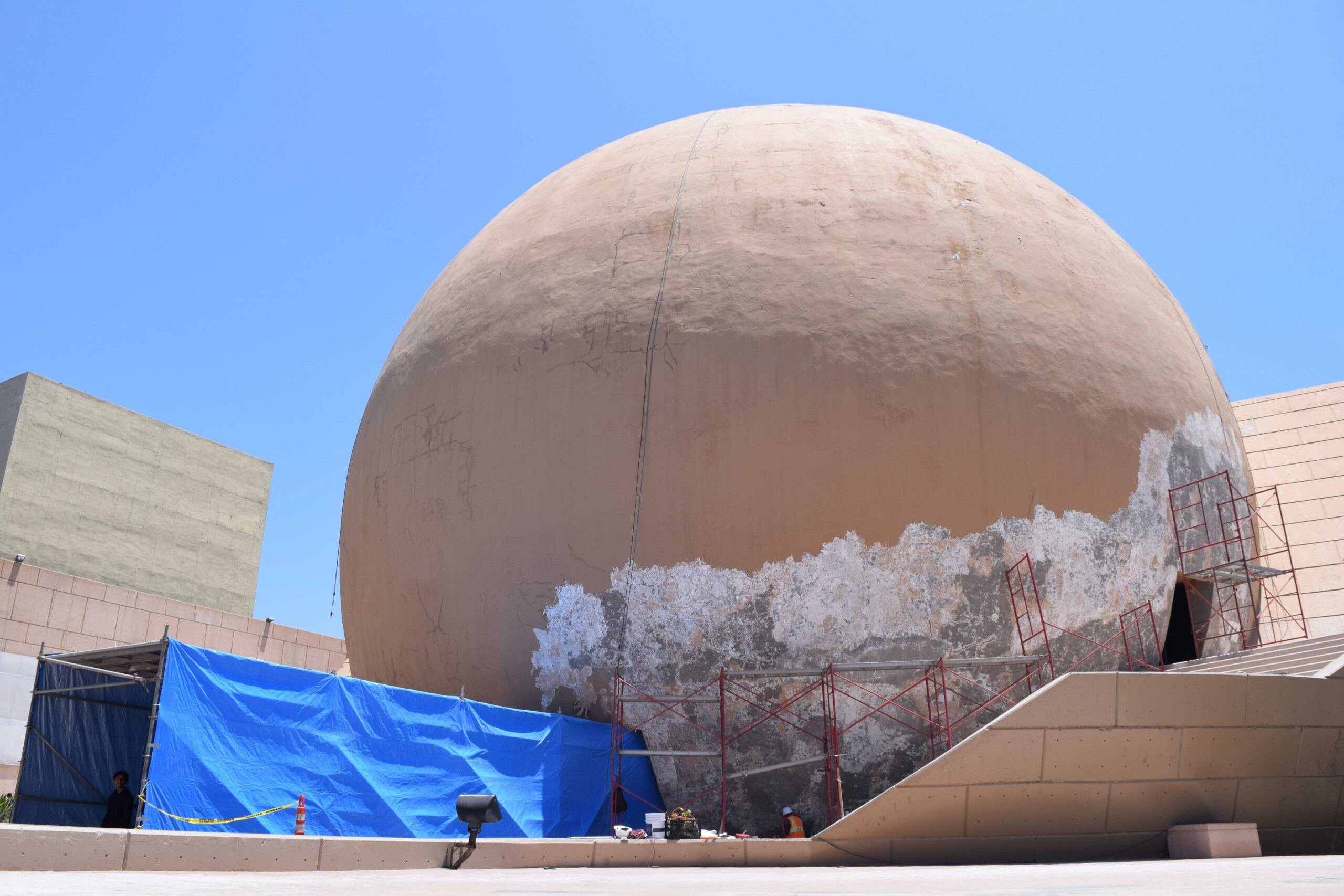 • La estrategia de este mantenimiento, iniciado el pasado 3 de junio, permite continuar con la programación cotidiana del Domo IMAX ya que, por seguridad de los usuarios, se ha instalado un túnel de acceso a la entrada principal.