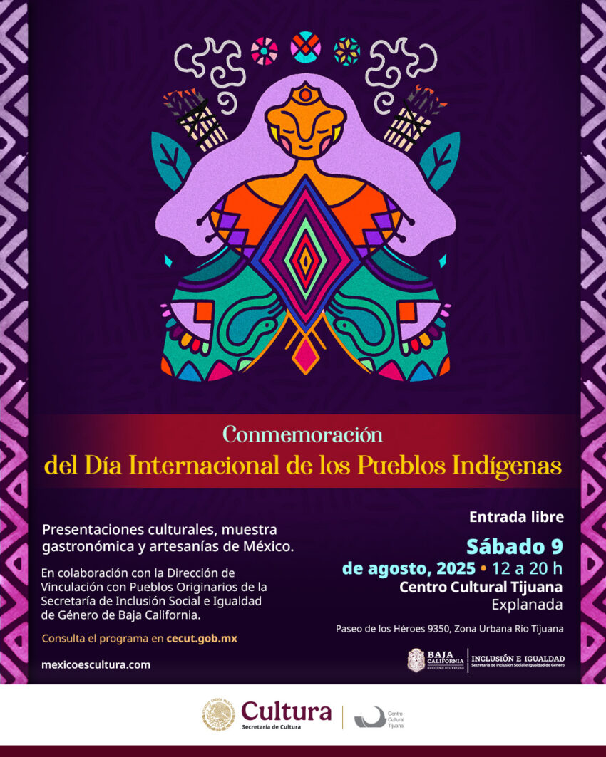 En el marco del Día Internacional de los Pueblos y Comunidades Indígenas, el Centro Cultural Tijuana (Cecut), en coordinación con la Secretaría de Inclusión Social e Igualdad de Género de Baja California, llevará a cabo este sábado 9 de agosto el Encuentro de Saberes: Celebración de los Pueblos Indígenas, una jornada dedicada a honrar la riqueza cultural, la historia y los aportes de los pueblos originarios de la región.