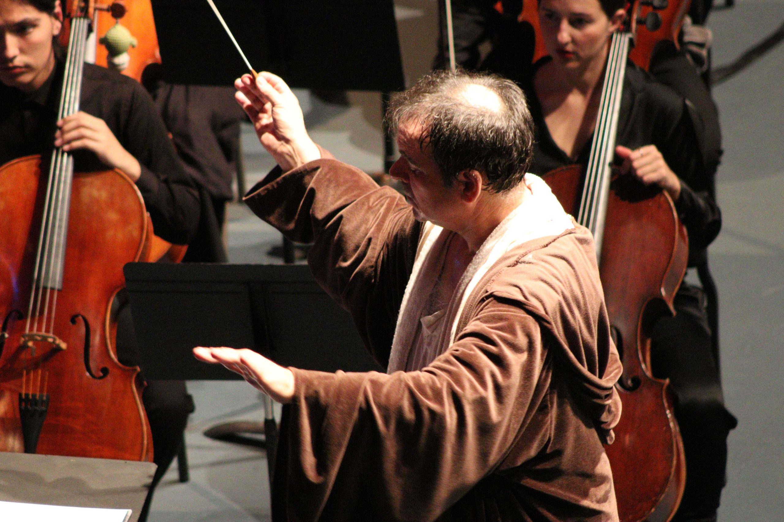 “Escucharás, la fuerza de las fuerzas, el poder de los metales, y el equilibrio de la armonía sentirás, la orquesta no sola toca, los jóvenes, estudiantes de música de la OBC y sabios maestros del Sistema Estatal de Música, le acompañan. 35 años cumple la orquesta, rápida, precisa, legendaria se ha vuelto, nunca antes una misión sinfónica tan épica, este concierto, un homenaje es”, continuaba el evocador mensaje proveniente al parecer de una galaxia muy muy lejana.