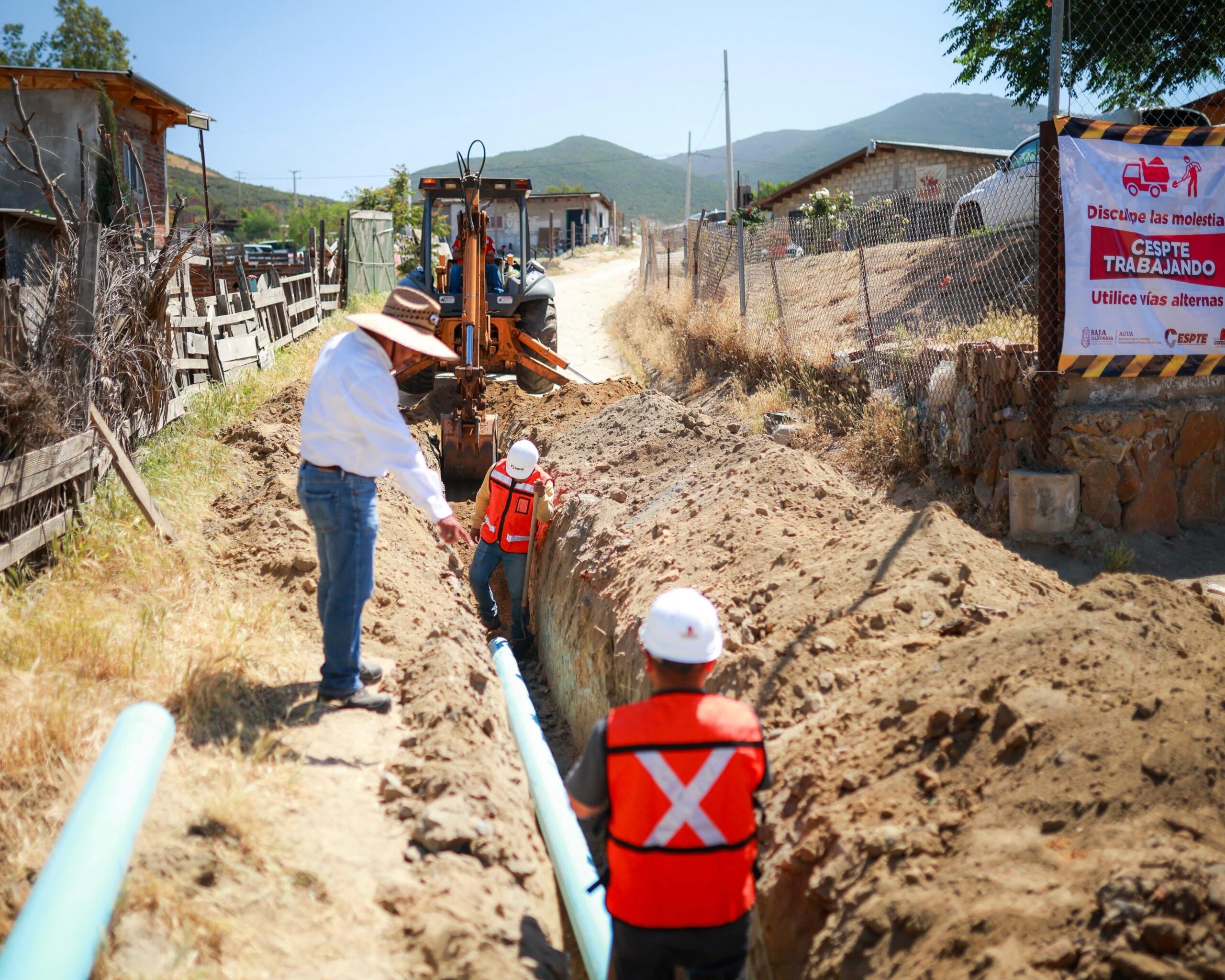 Durante el recorrido, la mandataria encabezó el inicio de los trabajos para introducir la línea de conducción y distribución de red de agua potable en la calle Michoacán del ejido Nueva Colonia Hindú, contando con el acompañamiento de autoridades de la Secretaría para el Manejo, Saneamiento y Protección del Agua (SEPROA) y de la Comisión Estatal de Servicios Públicos de Tecate (CESPTE).