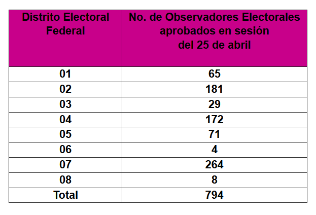 El Instituto Nacional Electoral en Baja California (INE BC) informa que los Consejos Distritales Federales 01, 02, 03 04, 05, 06, 07 y 08 en la entidad, aprobaron en sesiones extraordinarias, un total de 794 de solicitudes de la ciudadanía que cumplió con todos los requisitos para participar en la Observación Electoral en el Proceso Extraordinario para elegir cargos del Poder Judicial de la Federación 2024-2025.