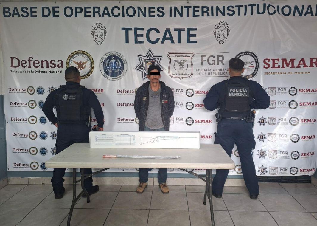 - Un masculino fue detenido por elementos de la Dirección de Seguridad Ciudadana y Tránsito Municipal de Tecate, luego de ser señalado por agresiones, daños, amenazas y portación de arma prohibida en el poblado Valle de las Palmas.