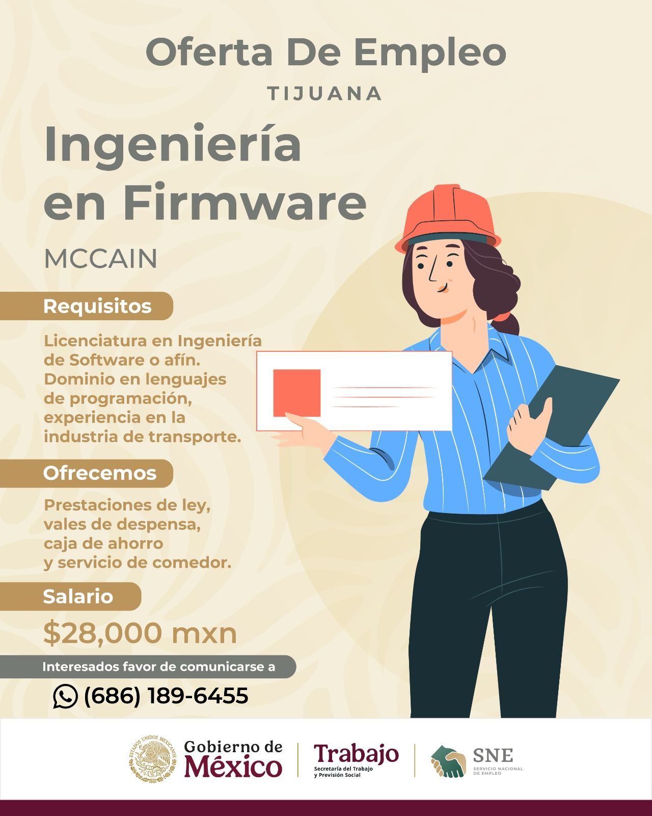 La Secretaría del Trabajo y Previsión Social (STPS) de Baja California, a través del Servicio Nacional de Empleo (SNE), dio a conocer nuevas vacantes disponibles en el municipio de Tijuana, como parte del esfuerzo permanente por vincular a la población con oportunidades laborales formales.