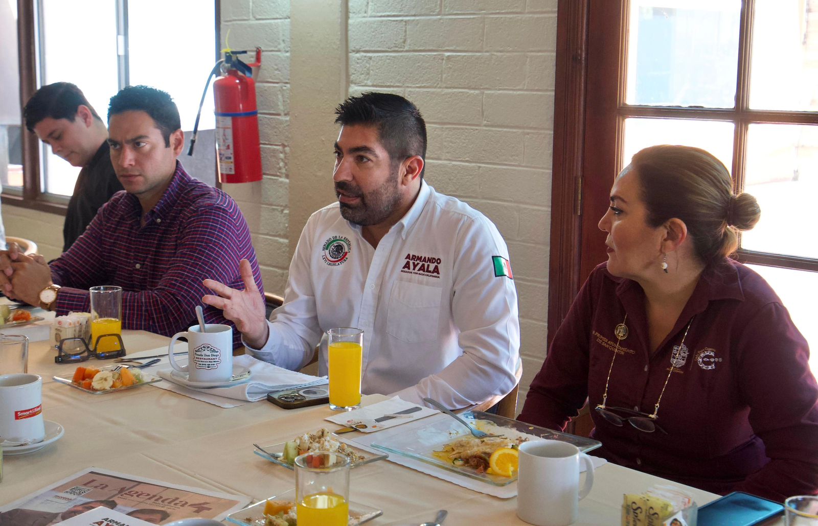 • A fin de abordar diversos aspectos sobre las principales áreas de oportunidad que contribuirían detonar el desarrollo de San Quintín, el senador Armando Ayala, sostuvo una reunión con la presidenta municipal Miriam Cano.