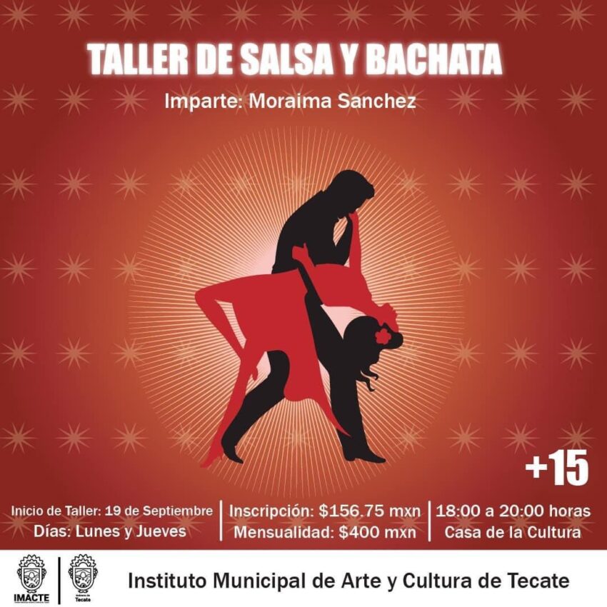 - El Instituto Municipal de Arte y Cultura de Tecate (IMACTE), da a conocer a los interesados en aprender o mejorar sus técnicas de baile, que la convocatoria para el Taller de Salsa y Bachata impartido por Moraima Sánchez, se extiende al día jueves 19 de septiembre.