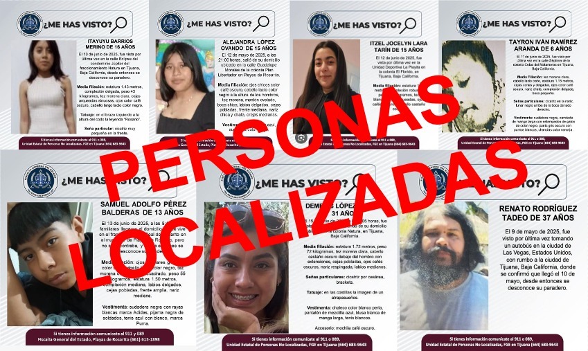 Las personas localizadas en diferentes acciones son: Itayuyu Barrios Merino, de 16 años; Alejandra López Ovando, de 15 años; Itzel Jocelyn Lara Tarín, de 15 años; Tayron Iván Ramírez Aranda, de 6 años; Samuel Adolfo Pérez Balderas, de 13 años; Demecis López Onofre, de 31 años; y Renato Rodríguez Tadeo, de 37 años.
