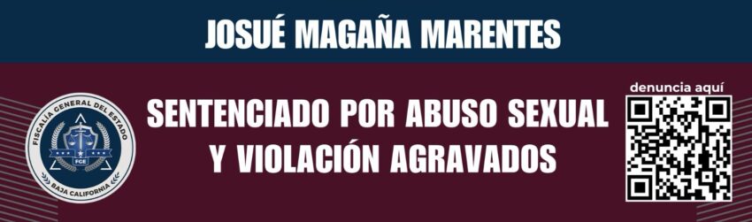 La Fiscalía General del Estado informa que, como resultado del trabajo firme y coordinado de la Unidad de Investigación Especializada en Delitos Sexuales, adscrita a la Fiscalía Especializada en Delitos contra Mujeres por Razón de Género, se obtuvo una sentencia condenatoria de 16 años de prisión en contra de Josué Magaña Marentes, por su responsabilidad penal en la comisión de los delitos de abuso sexual y violación agravados.