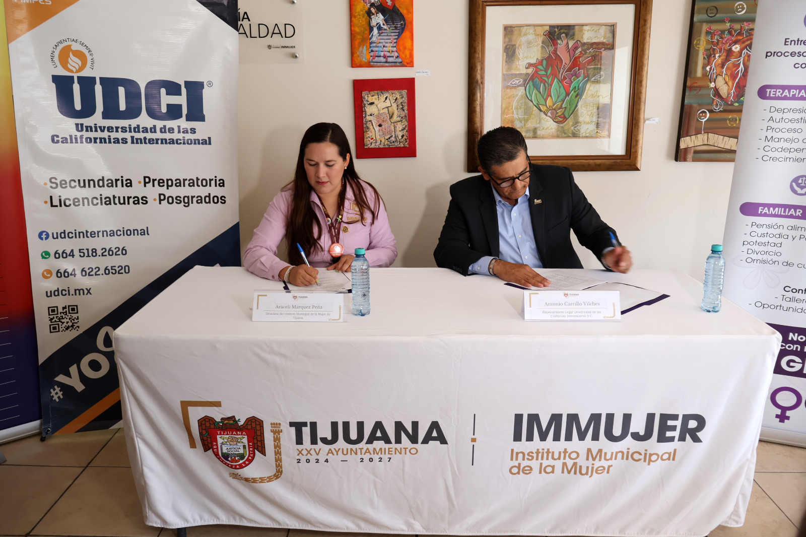 - Con el objetivo de fortalecer la prevención de la violencia y fomentar la formación socialmente responsable, la Universidad de las Californias Internacional (UDCI) y el Instituto Municipal de la Mujer (Inmmujer) firmaron un convenio de colaboración que beneficiará tanto a estudiantes como al personal de la dependencia.