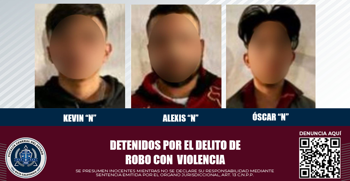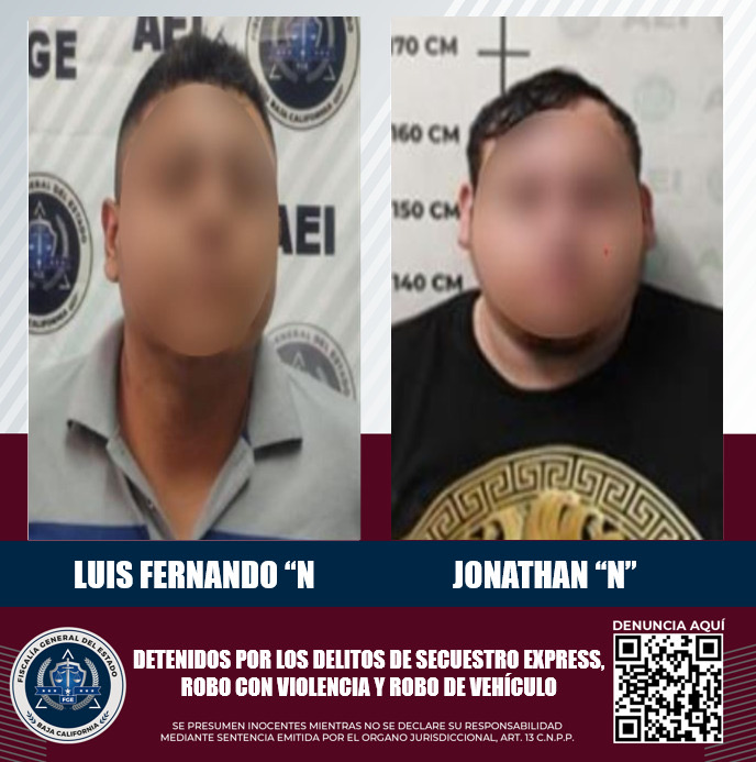 La Fiscalía General del Estado, encabezada por la Dra. Ma. Elena Andrade Ramírez, informa que, gracias a la ardua labor de investigación y a las estrategias de inteligencia de la Agencia Estatal de Investigación (AEI), se logró la desarticulación de dos bandas criminales que operaban en el municipio de Tijuana, dedicadas al secuestro equiparado en su modalidad exprés, robo calificado a casa habitación con violencia, robo de vehículo con violencia, y robo con violencia a joyerías y tiendas de autoservicio.