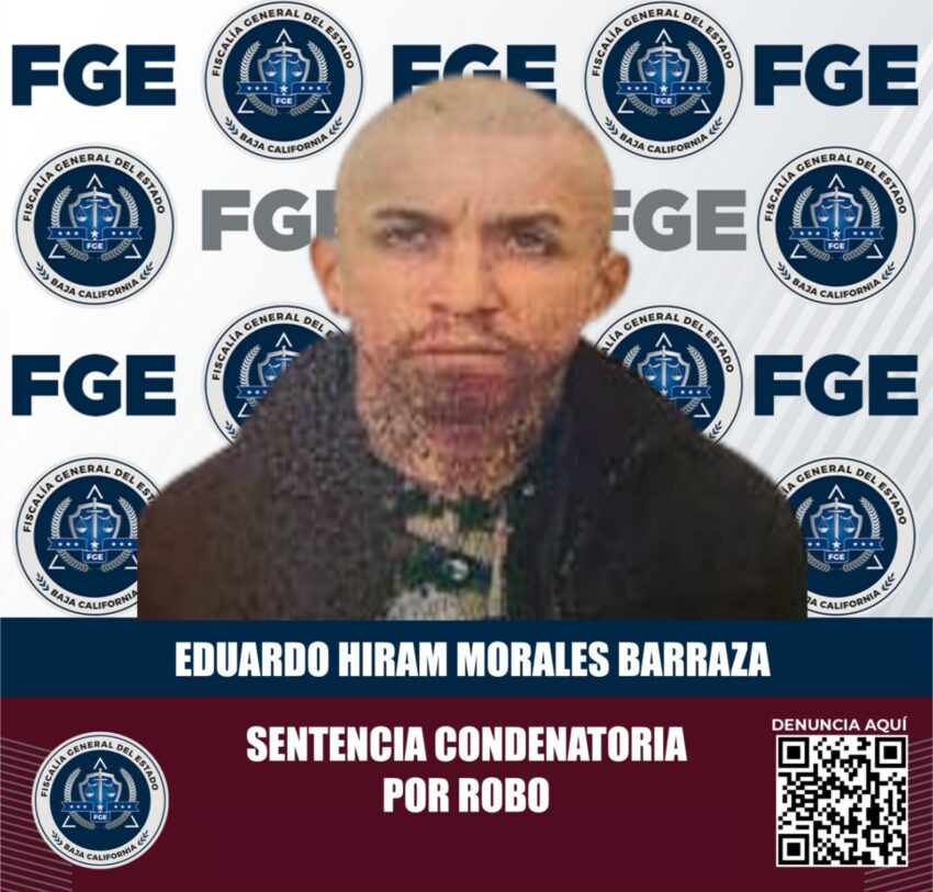 La Fiscalía General del Estado, a través de la Fiscalía Regional de Tijuana, logró que se dictara sentencia condenatoria en contra de Eduardo Hiram Morales Barraza, alias Óscar Alejandro Morales Ordaz, por el delito de robo con violencia.