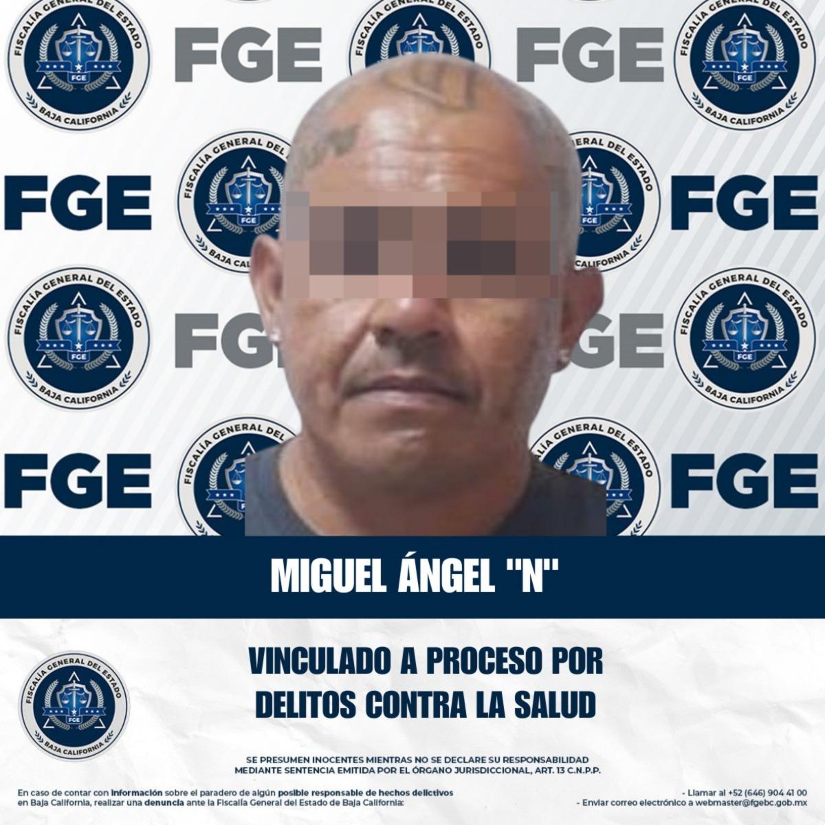- La Fiscalía Regional de Tecate, a través de la Unidad de Investigación con Detenido, informa que se logró la vinculación a proceso de Miguel Ángel «N» por el delito contra la salud en su modalidad de posesión de metanfetamina.
