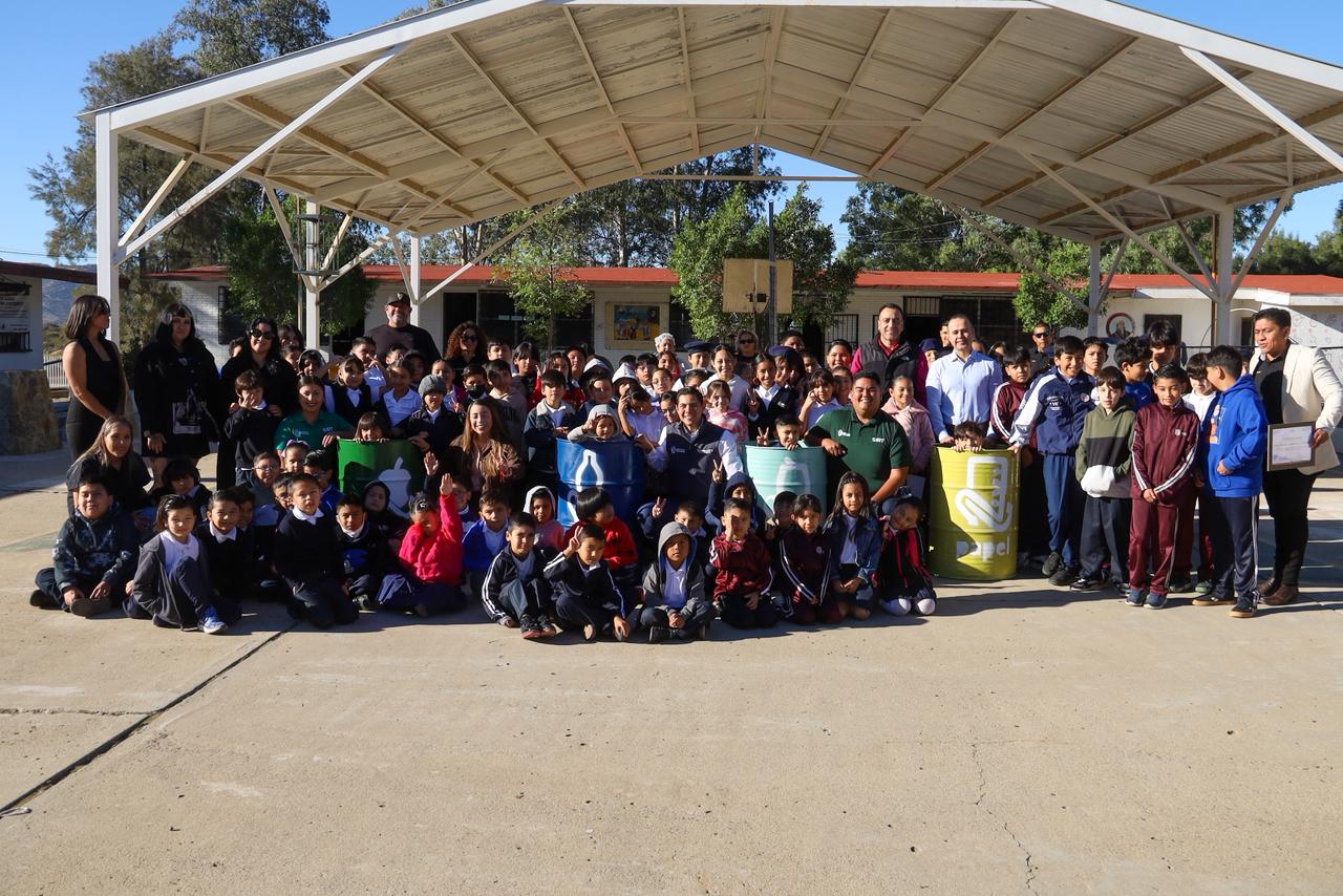 Durante la visita, el Gobierno de Tecate hizo también la entrega de contenedores para separación de basura, fortaleciendo así la educación ambiental desde temprana edad y promoviendo una cultura de sostenibilidad entre las y los estudiantes.