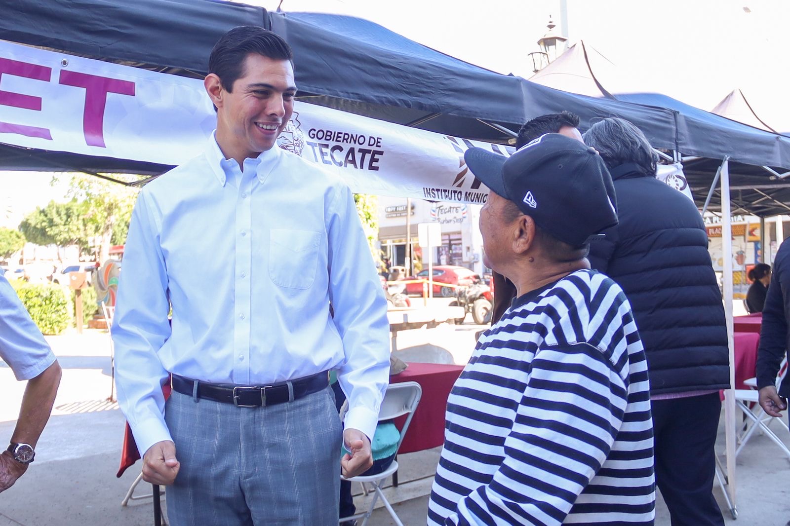 - El Alcalde Román Cota y la Presidenta del DIF Tecate, Alejandra Herrera, encabezaron la jornada de atención ciudadana en el Parque Miguel Hidalgo.