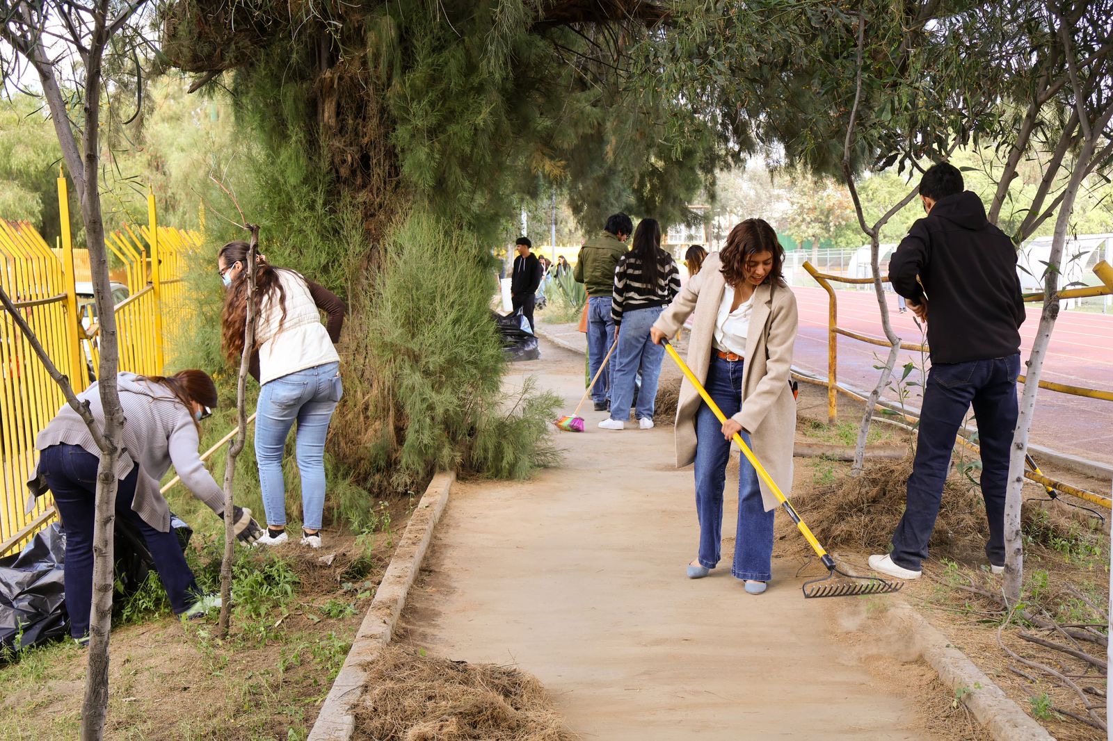 La jornada contó con la participación activa de personal de diversas dependencias del gobierno municipal, así como de voluntarios comprometidos con el cuidado de su entorno. Durante la actividad, se realizaron labores de recolección de basura, deshierbe, poda y limpieza general en las instalaciones de la unidad deportiva.
