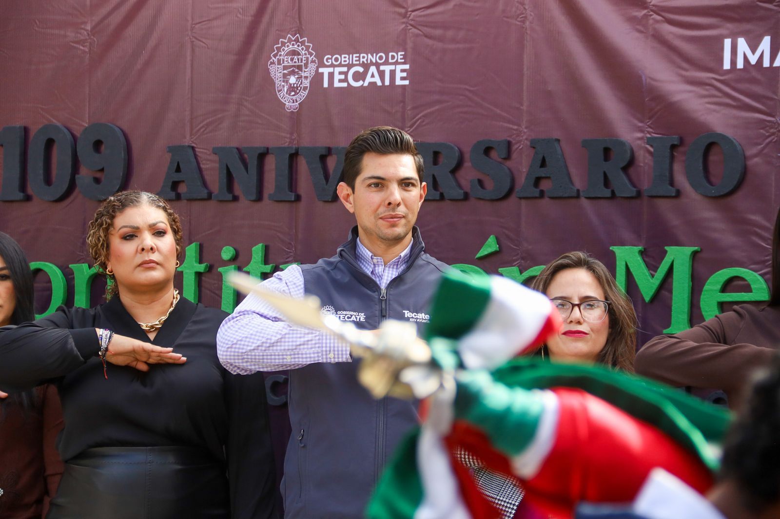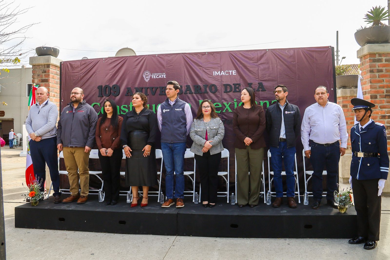 - En un ambiente de respeto, identidad cívica y profundo sentido histórico, el Gobierno de Tecate llevó a cabo esta tarde la Ceremonia Cívica Conmemorativa del 109 Aniversario de la Promulgación de la Constitución Política de los Estados Unidos Mexicanos, en el corredor Lázaro Cárdenas del Parque Miguel Hidalgo, acto encabezado por el alcalde Román Cota.