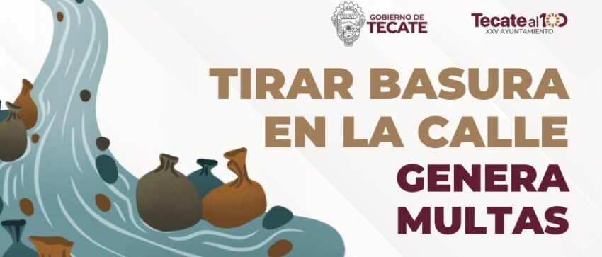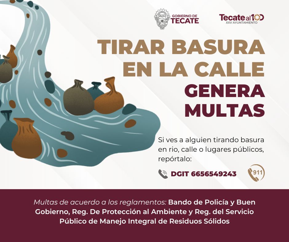 - La Dirección de Gestión Integral del Territorio (DGIT) del Gobierno de Tecate informa a la ciudadanía que se aplicarán multas a quienes sean sorprendidos tirando basura en las inmediaciones del Río Tecate, calles o espacios públicos del municipio.