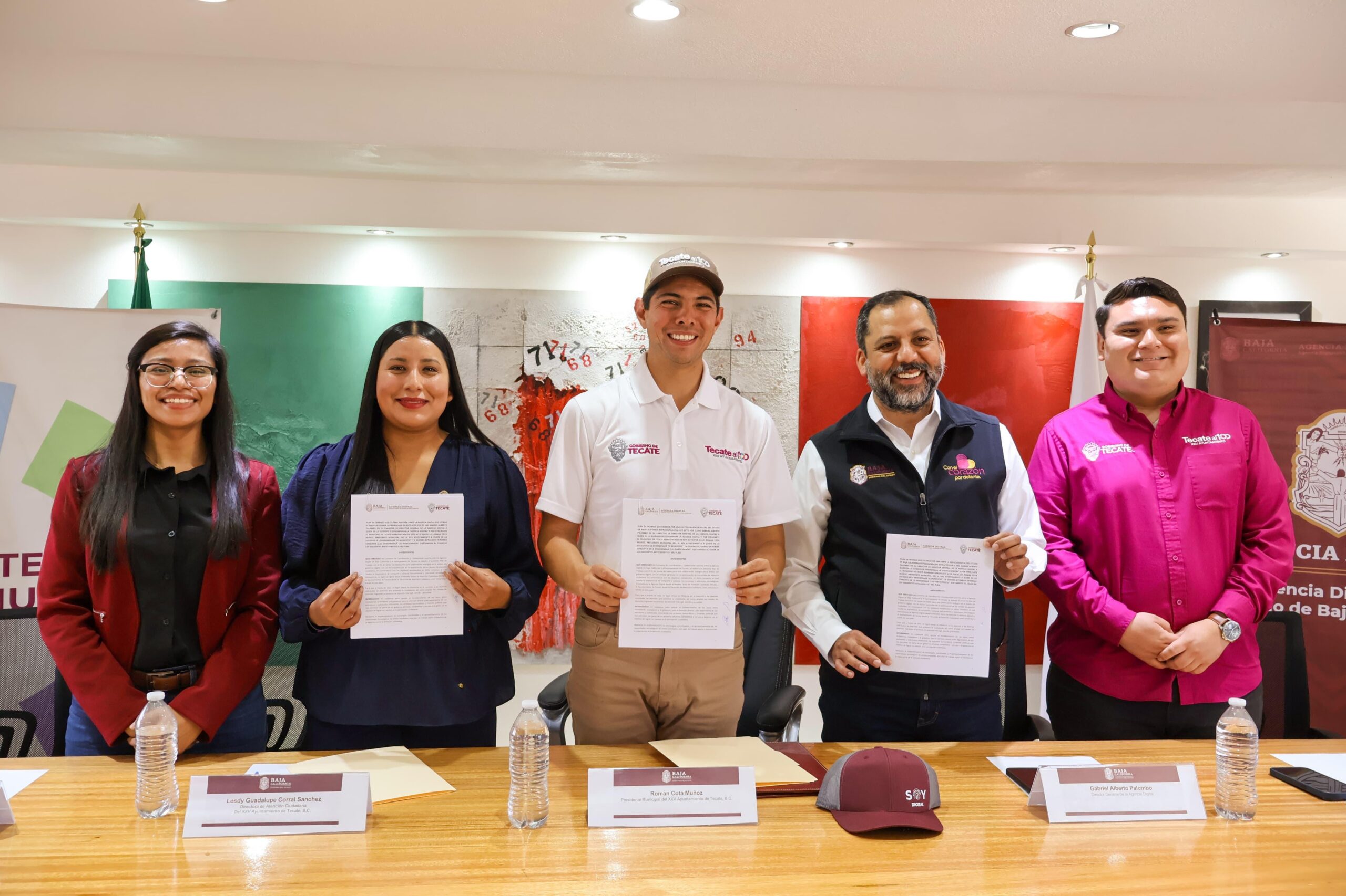 En el evento también estuvieron presentes Viridiana Castro, Directora de Operaciones de la Agencia Digital; Lesdy Corral, Directora de Atención Ciudadana del XXV Ayuntamiento de Tecate; Ángel Medina, Director General de la Agencia Digital de Tecate; y Natalia Torres, Coordinadora del Modelo Único de Atención Ciudadana, quienes reforzaron con su presencia el compromiso institucional de dar seguimiento puntual a este acuerdo de colaboración.
