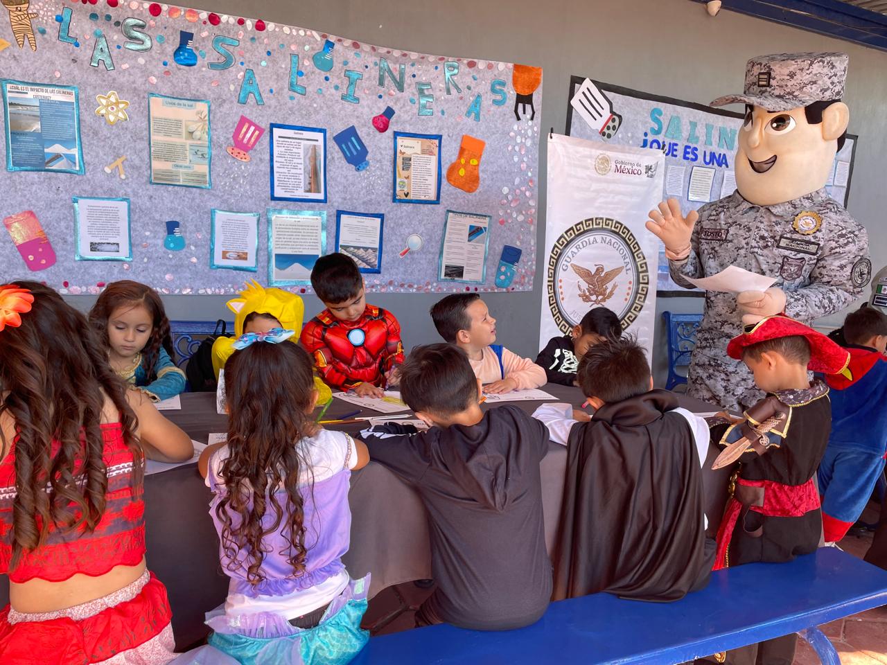 Además, instalaron el módulo de proximidad social, exhibición de equipo táctico, exhibición de fotografías de la Guardia Nacional, equipo de vocería y el equipo de proximidad de la Guardia Nacional, Botarga Agente JUSTO, quienes interactuaron con los estudiantes y personal administrativo y docente.