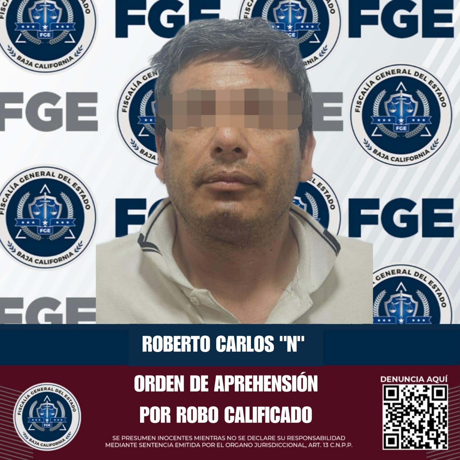 En cumplimiento de una orden de aprehensión en contra de Roberto Carlos “N”, la Agencia Estatal de Investigación, adscrita a la Fiscalía Regional de Tijuana, llevó a cabo su detención y presentación ante la autoridad judicial, por el delito de robo calificado a comercio abierto al público.
