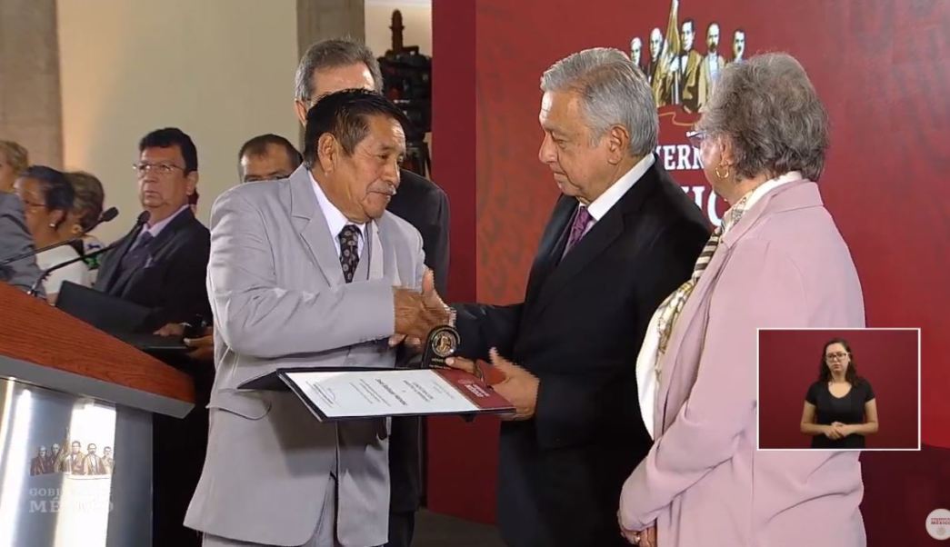 Además, se entregó un reconocimiento especial al maestro Salomón Maximiliano Emeterio en representación de los maestros indígenas.