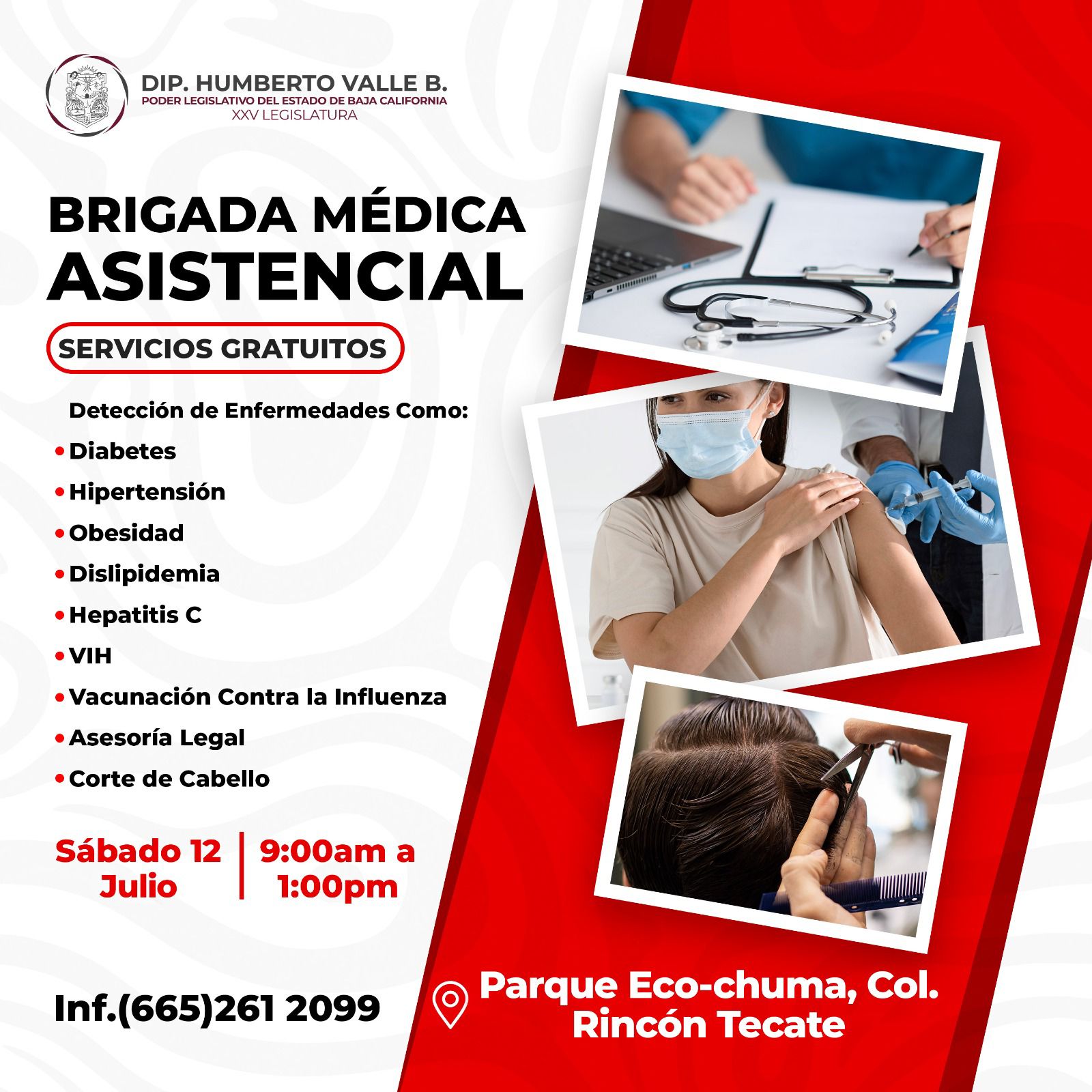- El diputado Humberto Valle invita a la ciudadanía a participar en la Brigada Médico-Asistencial Gratuita que se llevará a cabo este sábado 12 de julio, en el Rincón Tecate.
