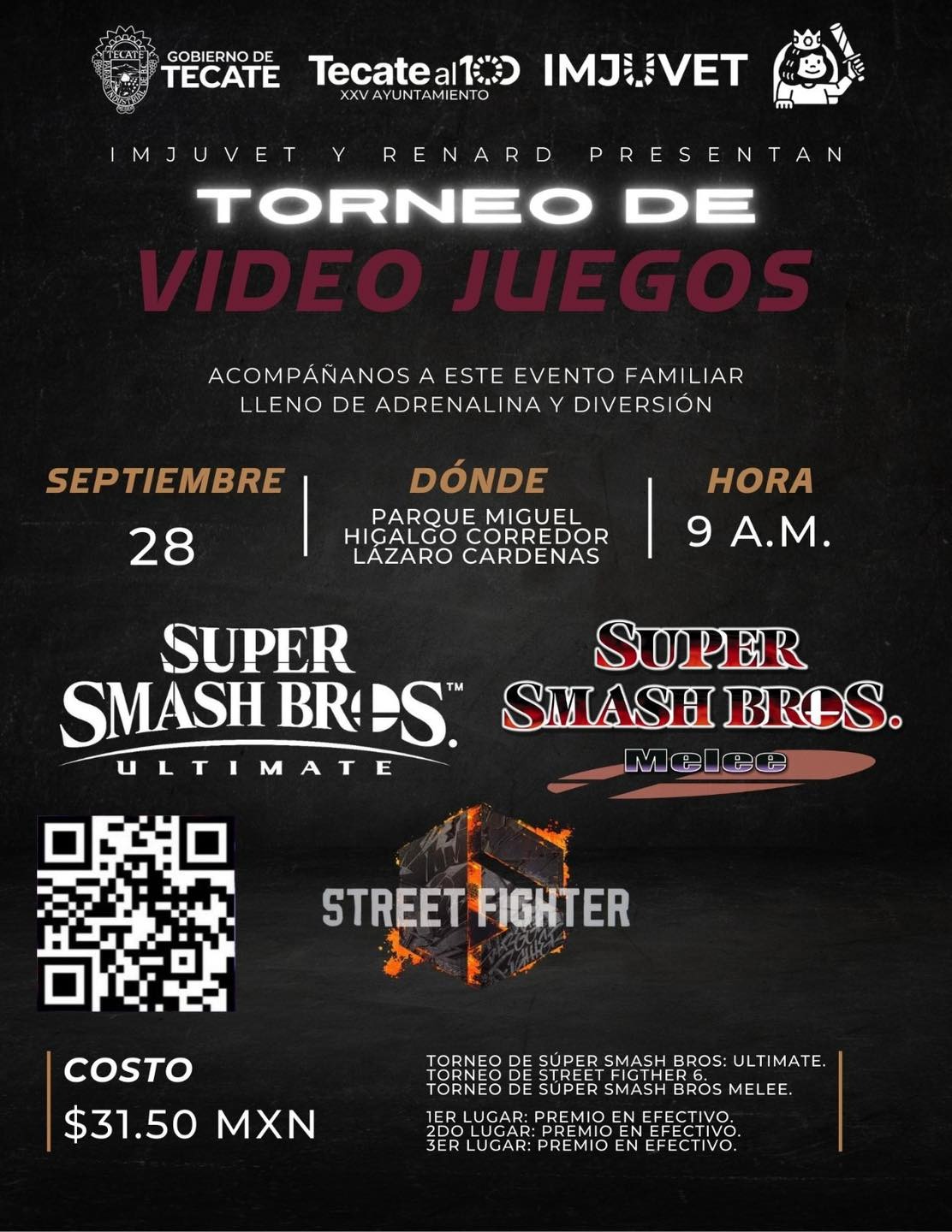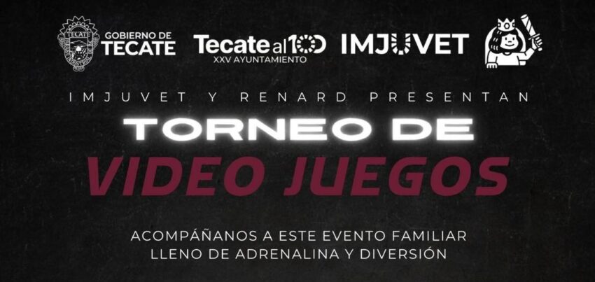 - El Instituto Municipal de la Juventud de Tecate (IMJUVET), en colaboración con Renard, invita a las juventudes amantes de los videojuegos a ser parte del Torneo de Videojuegos que tendrá lugar el próximo 28 de septiembre en el emblemático Parque Miguel Hidalgo.