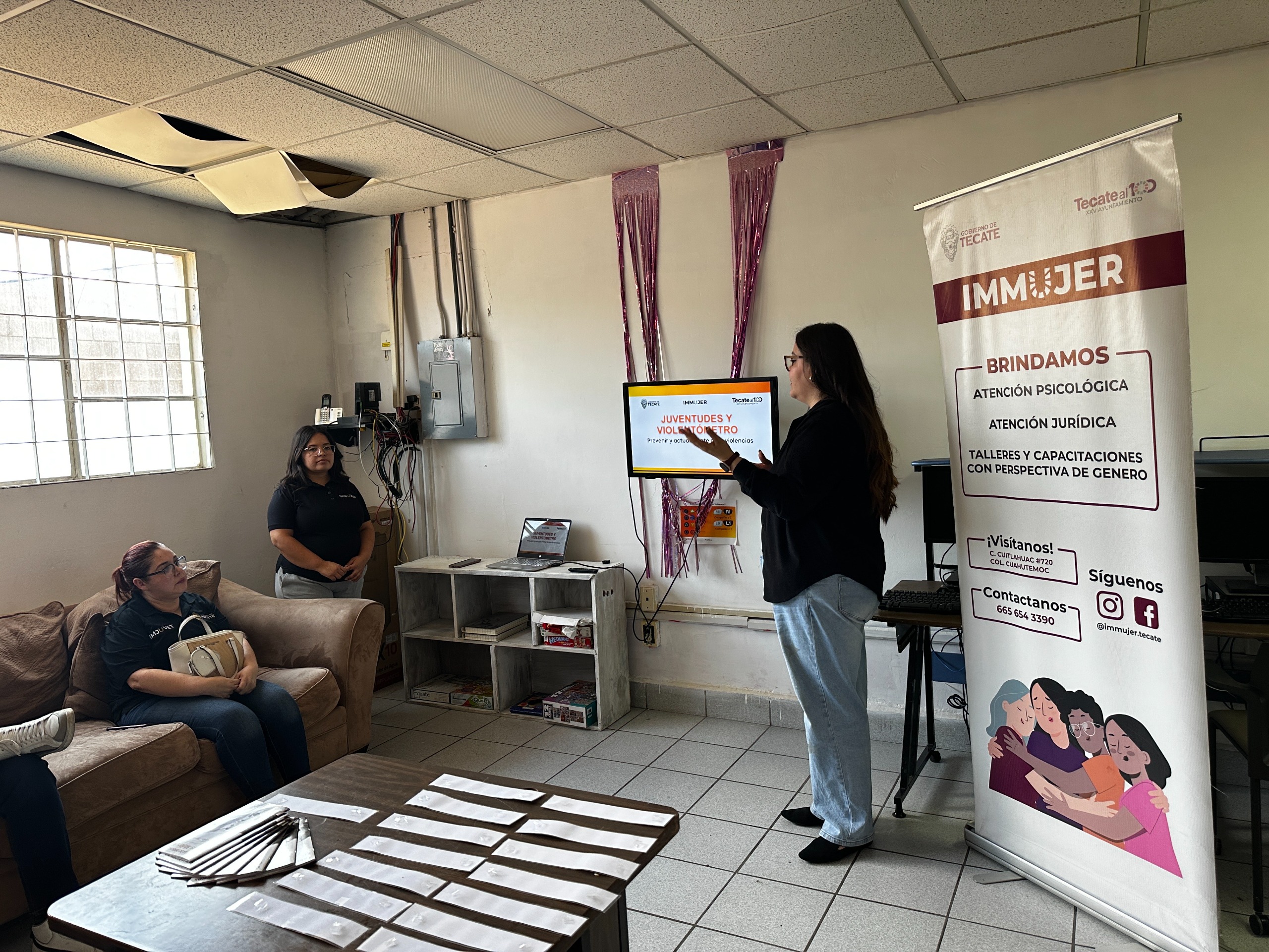 - En el marco de las acciones permanentes de prevención de la violencia, el Instituto Municipal de la Mujer (IMMUJER) impartió la capacitación “Juventudes y Violentómetro: Prevenir y Actuar ante las Violencias” , dirigida al personal del Instituto Municipal de la Juventud de Tecate (IMJUVET).