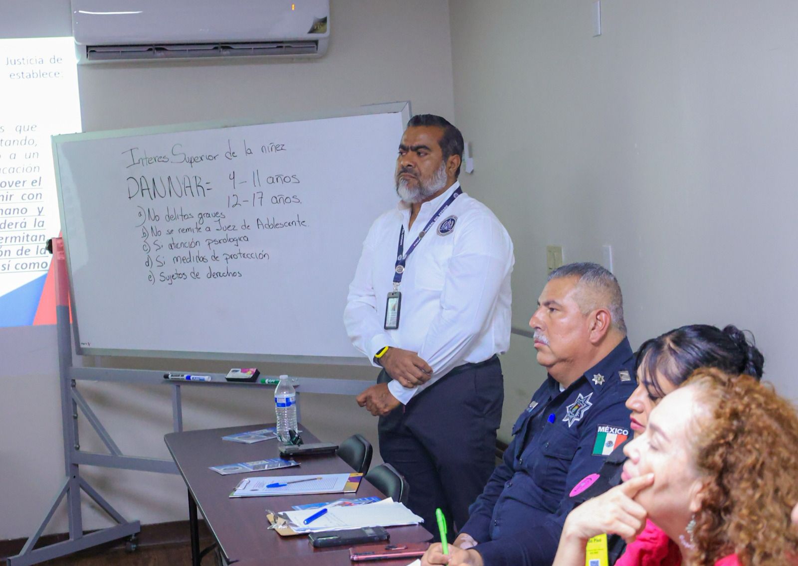 Durante el taller, impartido por personal especializado de la Fiscalía, los agentes recibieron información sobre protocolos legales e internacionales en la atención de niñas, niños y adolescentes en riesgo delictivo, así como una introducción al procedimiento penal aplicable a adolescentes.