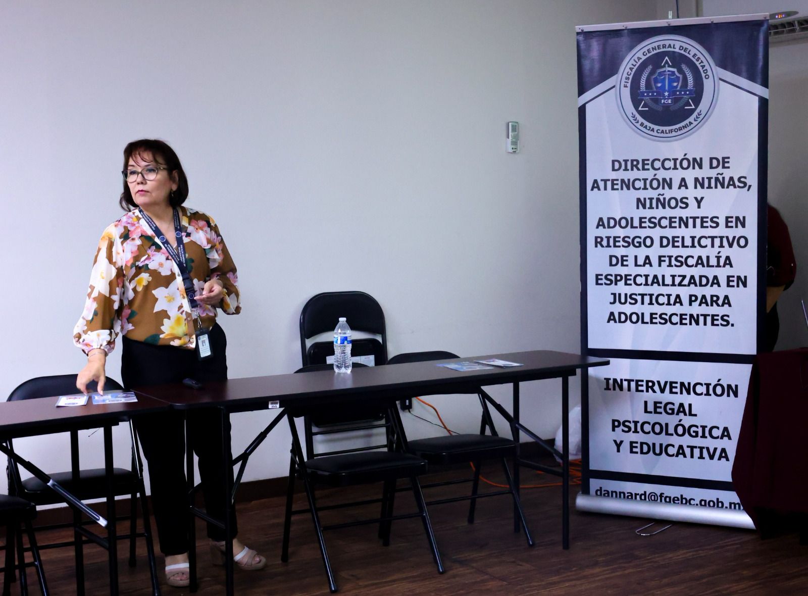 La capacitación estuvo a cargo de José Pedro Leyva Rodríguez, coordinador de Fiscal Enlace Contigo en Mexicali; María Isabel Sosa Camas, titular de la Dirección de Atención a Niñas, Niños y Adolescente en Riesgo Delictivo, y Oliver Flores Camacho agente del Ministerio Público especializado en Justicia para Adolescentes.