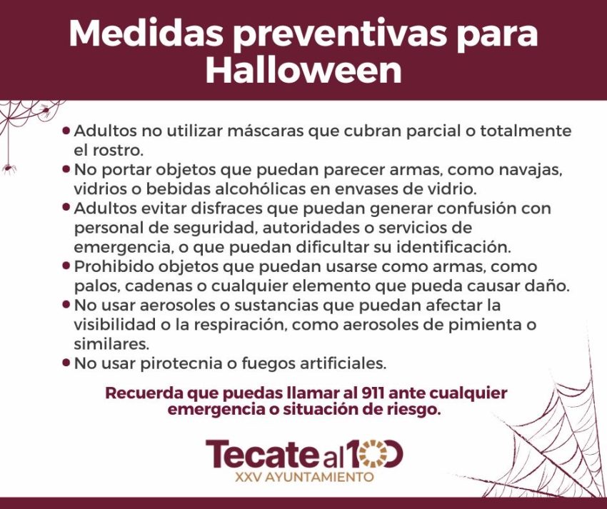 El Gobierno de Tecate, a través de la Dirección de Seguridad Ciudadana y Tránsito Municipal de Tecate ha implementado un plan especial de seguridad para garantizar la tranquilidad de los ciudadanos durante los eventos de «El Festival El Pan de la Catrina y Halloween».