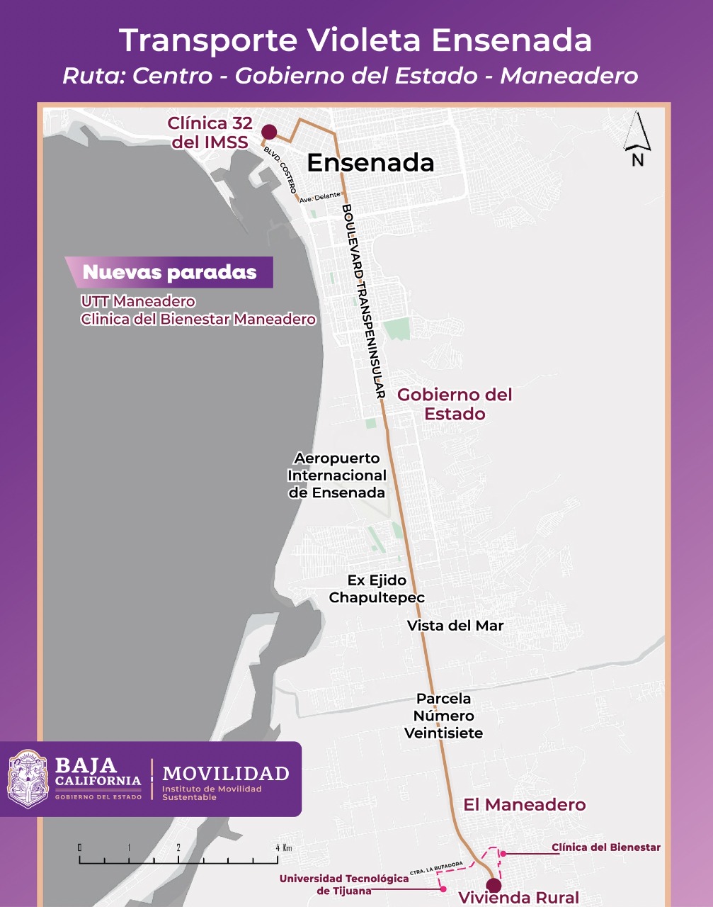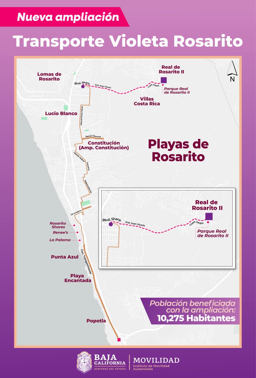 La mandataria estatal señaló que uno de los principales proyectos de transporte impulsados en su administración es el “Transporte Violeta”, que proporciona servicio gratuito y seguro a mujeres, así como a sus hijos menores de 12 años. Este sistema dispone de 47 unidades distribuidas en 10 rutas que operan en Tijuana, Mexicali, Tecate, Ensenada y Playas de Rosarito, superando los 10 millones de abordajes gratuitos en 2025.