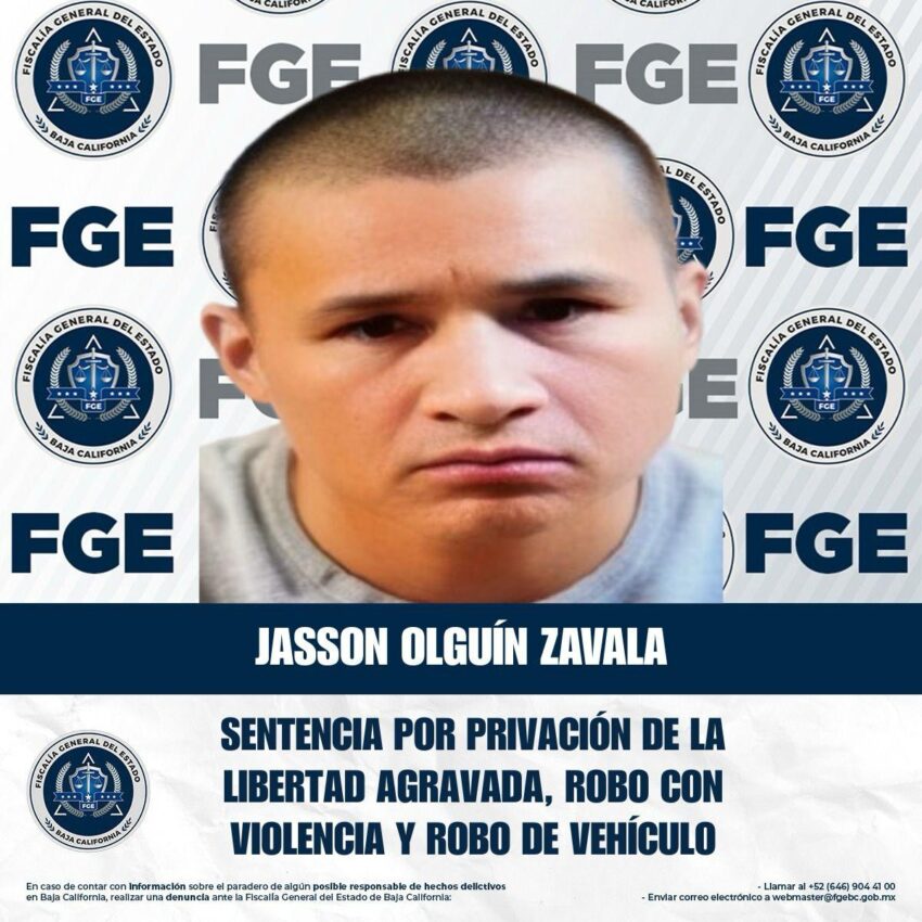 La Fiscalía Regional de Tecate, a través de la Unidad de Delitos Contra Robos, obtuvo una sentencia condenatoria de nueve años, ocho meses contra Jasson Olguín Zavala.