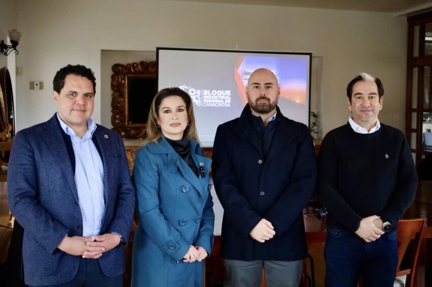 Los representantes de Canacintra Tecate, Lic. Mariana Manzano, Canacintra Mexicali, Lic. Francisco Fuentes, Lic. Alejandro Jaramillo de Canacintra Tijuana y el Vicepresidente Regional Zona Noroeste, Lic. Alberto Sánchez, sostuvieron una reunión extraordinaria en la ciudad de Tecate, con el objetivo de revisar la estrategia arancelaria del Presidente de Estados Unidos, Donald Trump, que ha dejado en incertidumbre a la industria del norte de México.